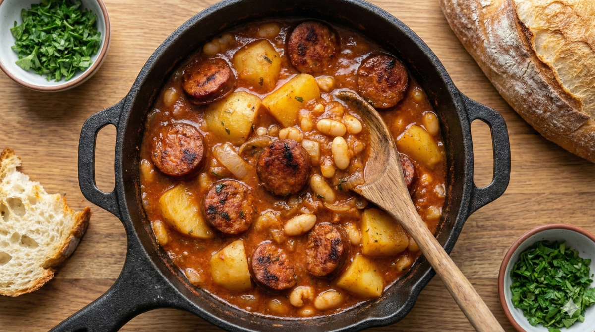 Il y a des plats qui n’ont pas besoin de sophistication pour séduire. Des recettes simples, presque instinctives, dont le parfum suffit à transformer une cuisine en refuge chaleureux. Ce ragoût au chorizo, aux pommes de terre fondantes et à la tomate parfumée fait partie de ces merveilles discrètes.