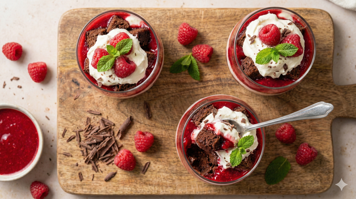 Verrines faciles et bluffantes, je vous jure c’est ma recette de secours quand j’ai des invités. Le mélange moelleux et chocolat avec du frais, c’est toujours gagnant.